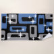 Colourful Retro Mid Century Modern Abstract Pattern in Black Grey & Blue.