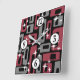 Colourful Retro Mid Century Modern Abstract Pattern in Black Grey & Red.