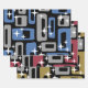 Colourful Retro Mid Century Modern Abstract Pattern in Black Grey & Blue.