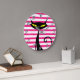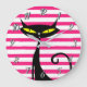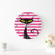 Retro Mid Century Modern Black Cat Pink Stripes Large Clock