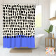 Retro Mid Century Modern Blue Black Abstract Shower Curtain