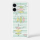 A stylish mid-century modern designed phone case featuring geometric diamond shapes arranged on a teal stripe background in popular atomic era colours!