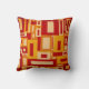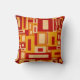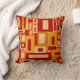 The Retro Mid Century Modern Geometrics Throw Pillow features a geometric pattern of rectangles and squares with a crackle texture. The colours are red, golden yellow, ochre and ivory.