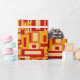 Retro Mid Century Modern Geometrics wrapping paper features a geometric pattern of rectangles and squares with a crackle texture. The colours are red, golden yellow, ochre and ivory.