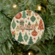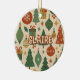 Add timeless charm to your holiday decor with this retro mid century modern ornament. Featuring a classic yet modern geometric design with pinetrees, floral and botanical accents, snowflakes, and star details in festive red and green, it’s perfect for bringing a stylish vintage touch to your winter celebrations.