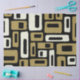 Retro Mid Century Modern Abstract Pattern Black White & Gold.