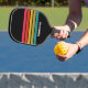 Retro Midnight Rainbow Across Striping with Name Pickleball Paddle radiates bold, vibrant energy, blending deep, dark tones with a spectrum of colours that suggest motion and rhythm on the court. Its striking design brings personality and flair to every rally, turning each match into a spirited expression of individuality. Perfect for players who enjoy combining dynamic play with colourful, eye-catching style, it transforms every game into a celebration of character and lively energy.