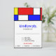 A fun and funky retro wedding invitation that's as fun as you are - a nostalgic look to the mid Sixties with a cool bold font paired with primary colours of yellow, blue and red outlined in black in geometric shapes in the style of Mondrian.