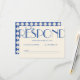 Retro Minimalistic Chequered Pattern Blue Wedding RSVP Card