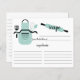 Fun retro bridal shower kitchen recipe cards featuring a mint polka dot apron with kitchen tools & rolling pin. The front of our recipe card offers room for a recipe title, from the kitchen of and ingredients space. Flip our recipe card over to view our lined back for recipe directions. Visit our shop for matching bridal shower invitations Available in our shop in a large assortment of popular wedding shower colours. Perfect bridal shower invitation insert for a stock the kitchen bridal shower.