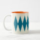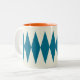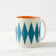 Retro Mod Blue Diamond Pattern Two-Tone Coffee Mug