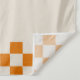 Mod bride to be backdrop, With a groovy retro orange color and cream checkerboard pattern border.