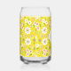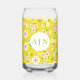 Retro Mod Flowers Yellow & White Monogram Can Glass