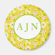 Retro Mod Flowers Yellow & White Monogram Magnet