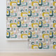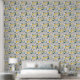 Bring a touch of retro flair to your interiors with this joyful wallpaper featuring a unique geometric design. The retro mood pattern combines calm and vivid colors that can transform any room into a stylish haven. Perfect for those looking to make a bold statement, this wallpaper is sure to impress your guests and enhance your decor. Explore the endless possibilities of revitalizing your environment and express your personality with this eye-catching design.