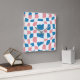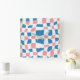 Retro Mod Pink Blue Checkerboard Abstract Square Wall Clock