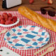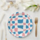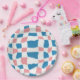 Retro Mod Pink Blue Chequerboard Abstract Paper Plate