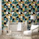 Bring a touch of retro flair to your interiors with this joyful wallpaper featuring a unique geometric design. The retro mood pattern combines bold moody colours that can transform any room into a stylish haven. Perfect for those looking to make a bold statement, this wallpaper is sure to impress your guests and enhance your decor. Explore the endless possibilities of revitalising your environment and express your personality with this eye-catching design.