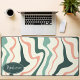 Retro Modern Abstract Marble Swirl Pink And Mint Desk Mat