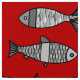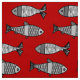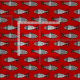 Retro Modern Fish, Deep Red and Grey / Grey Fabric