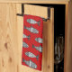 Retro Modern Fish, Deep Red and Grey / Grey Tea Towel