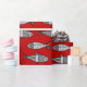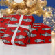 Retro Modern Fish, Deep Red and Grey / Grey Wrapping Paper