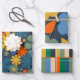 Retro Modern Floral Geometric Patterns Wrapping Paper Sheet