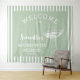 personalized welcome banner retro bachelorette party tapestry in neutral sage green and white with a cocktail glass is perfect as a bachelorette party photo backdrop. Celebrate your bridal shower in style with the perfect cocktail party theme in bold pink, the perfect theme for the nostalgic vintage 70s bride and her bridesmaids.