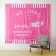 personalized welcome banner retro bachelorette party tapestry in bright colorful hot pink and white with a cocktail glass is perfect as a bachelorette party photo backdrop. Celebrate your bridal shower in style with the perfect cocktail party theme in bold pink, the perfect theme for the nostalgic vintage 70s bride and her bridesmaids.