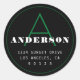 Retro-Modern Monogram Address | Black Green White Classic Round Sticker