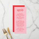 This dinner menu is perfect for wedding receptions, rehearsal dinners, and formal celebrations. It complements a pink and red wedding theme and matches modern retro stationery suites. The design is fully customizable with your menu items.