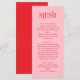 This retro modern pink and red wedding dinner menu features a clean and stylish design. The soft pink background pairs with bold red text to create a modern retro look. The minimalist layout keeps the menu easy to read and well organized.