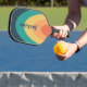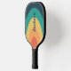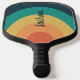 Cool colourful simple retro vintage rainbow arch in blue teal green yellow and orange with personalised name pickle ball paddle. Modern retro typography and easy to use templates. Personalised groovy 1970s modern hippie design. Original artwork by artist Catherine Sweetman