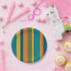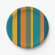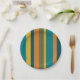 Retro Modern Vertical Stripe Pattern Teal Orange Paper Plate