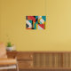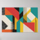 This bold geometric abstract art piece combines retro charm with modern design. Featuring blocks of teal, mustard yellow, burnt orange, black, and red in clean, angular compositions, the print showcases texture through lined patterns and intersecting shapes. Ideal for adding a playful yet structured aesthetic to any modern or mid-century inspired space.