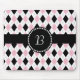 Retro Monogram Argyle Pattern Pink White Black Mouse Pad