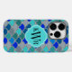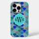 © 2014 Socialite Designs. Add a hip splash of colour to your mobile phone with this blue, turquoise, teal and grey fishscale pattern and banner for your monogram, name or initials.