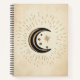 Retro hand drawn moon stars vintage style on a stained sepia toned background paper.