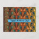 Vintage retro mother's day greeting card with a peacock feather design in warm golden tones and turquoise.