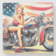 Retro Motorcycle Pin Up Stone Coaster
