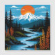 This stylish poster features a colourful and bold illustration of a retro mountain landscape in red, orange, and blue.