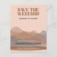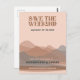 This save the date postcard is perfect for a destination wedding in the mountains. It features retro-inspired type that reads "Save the Weekend" and modern screenprint-like graphic of layered mountains in soft neutral colours. The front has a place to include the wedding weekend dates, couple's names and the wedding location and wedding website address. The back is setup as a postcard for easy mailing.