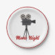 Fun paper plates for those who love all things movies features retro tripod style movie camera with customisable red text. Great for movie night. Check out our collection of movie themed paper & party supplies!