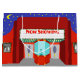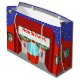 The stars are out in full force on this Retro Movie Theatre Gift Bag--both the stars in the night sky and the stars on the silver screen. This 1960's style, minimalist art design features the exterior of a classic movie house from the Golden Age of Cinema. The red building has a brilliantly lit marquee, which says, "NOW SHOWING," in red letters. Beneath the marquee, a theatre employee is ready for a crowd of movie going film buffs, which are sure to be lining up in droves. The silhouette of the clean cut, theatre worker is just visible through the aqua glass of the box office ticket booth. Not a kernel of popcorn can be found on the spotless grey sidewalk. Grey double doors flank the ticket booth. The front of the building displays black and white movie posters surrounded by dramatically lit frames. One poster shows star crossed lovers in a dramatic scene and the other shows a swimsuit clad starlet whose career is as bright as the sun she worships. This product is from the brilliant minds at Zazzle's StrangeLittleOnion, who have brought you such cult classics as Retro Pool Party, Film Noir Martini and Retro Space Age Cartoon Couple. Critics agree; if you can only purchase one design this season, make it this one (or any of the other spectacular StrangeLittleOnion designs)!
