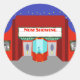 The stars are out in full force on these Retro Movie Theatre Stickers--both the stars in the night sky and the stars on the silver screen. This 1960's style, minimalist art design features the exterior of a classic movie house from the Golden Age of Cinema. The red building has a brilliantly lit marquee, which says, "NOW SHOWING," in red letters. Beneath the marquee, a theatre employee is ready for a crowd of movie going film buffs, which are sure to be lining up in droves. The silhouette of the clean cut, theatre worker is just visible through the aqua glass of the box office ticket booth. Not a kernel of popcorn can be found on the spotless grey sidewalk. Grey double doors flank the ticket booth. The front of the building displays black and white movie posters surrounded by dramatically lit frames. One poster shows star crossed lovers in a dramatic scene and the other shows a swimsuit clad starlet whose career is as bright as the sun she worships. This product is from the brilliant minds at Zazzle's StrangeLittleOnion, who have brought you such cult classics as Retro Pool Party, Film Noir Martini and Retro Space Age Cartoon Couple. Critics agree; if you can only purchase one design this season, make it this one (or any of the other spectacular StrangeLittleOnion designs)!