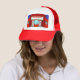 The stars are out in full force on this Retro Movie Theatre Trucker Hat--both the stars in the night sky and the stars on the silver screen. This 1960's style, minimalist art design features the exterior of a classic movie house from the Golden Age of Cinema. The red building has a brilliantly lit marquee, which says, "NOW SHOWING," in red letters. Beneath the marquee, a theatre employee is ready for a crowd of movie going film buffs, who are sure to be lining up in droves. The silhouette of the clean cut, theatre worker is just visible through the aqua glass of the box office ticket booth. Not a kernel of popcorn can be found on the spotless grey sidewalk. Grey double doors flank the ticket booth. The front of the building displays black and white movie posters surrounded by dramatically lit frames. One poster shows star crossed lovers in a dramatic scene and the other shows a swimsuit clad starlet whose career is as bright as the sun she worships. This product is from the brilliant minds at Zazzle's StrangeLittleOnion, who have brought you such cult classics as Retro Pool Party, Film Noir Martini and Retro Space Age Cartoon Couple. Critics agree; if you can only purchase one design this season, make it this one (or any of the other spectacular StrangeLittleOnion designs)!