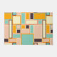 Add a burst of mid-century charm to your doorway with this retro multicolor geometric blocks doormat. Featuring bold shapes in shades of orange, teal, yellow, cream, and brown, the design brings a fun and stylish vibe to your home. Perfect for those who love vintage-inspired aesthetics, this doormat is both functional and decorative. Its durable design makes it great for everyday use, while its playful blocky style makes it a standout piece to welcome your guests.
