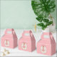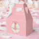 This Retro Mummy Baby Shower Party Favour Box features a retro-styled pregnant woman wearing a polka dot dress, and a hat, flowing by the wind. The pastel pink and cream colour scheme adds a soft touch to the overall design, making it perfect for a baby shower. Its charming aesthetic is sure to impress your guests and set the tone for a delightful celebration.