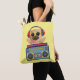 RETRO MUSICAL PUG AND CASSETTE PLAYER TOTE BAG