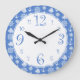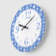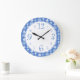Fun retro nautical pattern clock in crisp elegant blue and white big playful numbers for coastal kitchen.